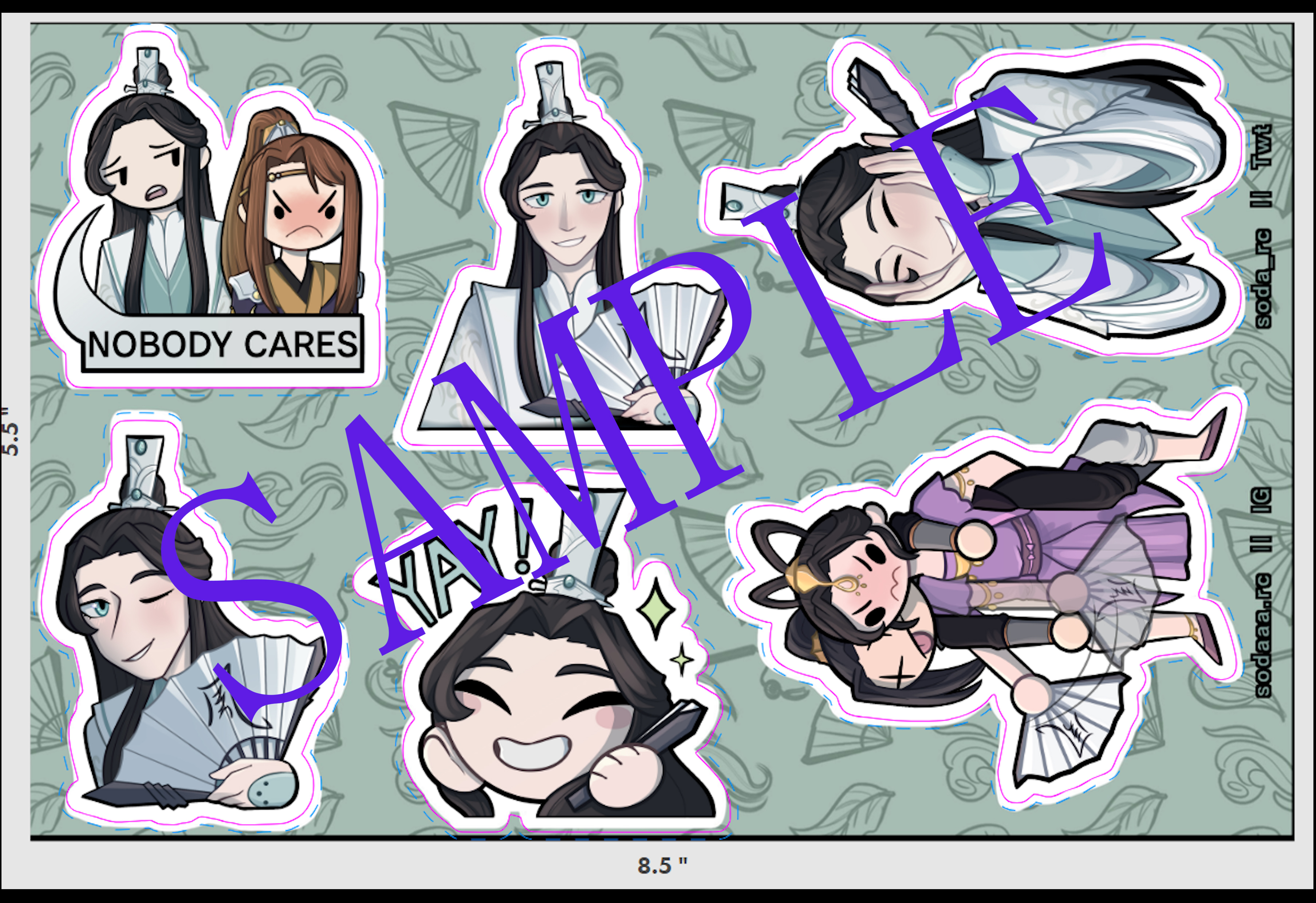 5.5" x 8.5" STICKER SHEET of Wind Master Shi Qingxuan and various characters from Heaven Official's Blessing: Tian Guan Ci Fu DIE CUT STICKERS